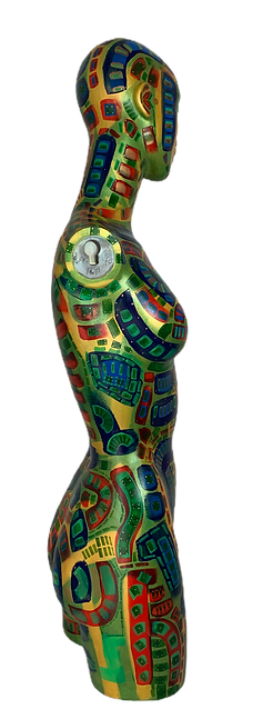 Hand-painted abstract designs on vintage and repurposed fashion mannequins